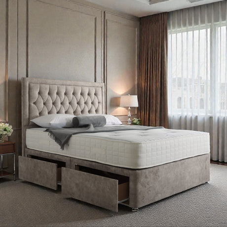 View full detailsRome Divan Bed Set with Upholstered Headboard The Rome Divan Bed Set from our Signature Collection is expertly handcrafted in the UK using high-qua...