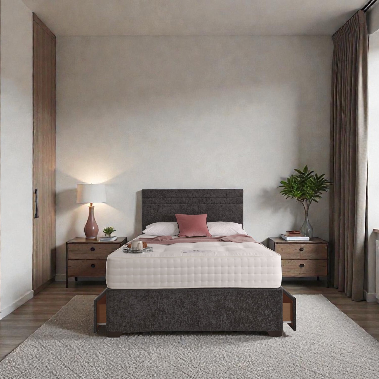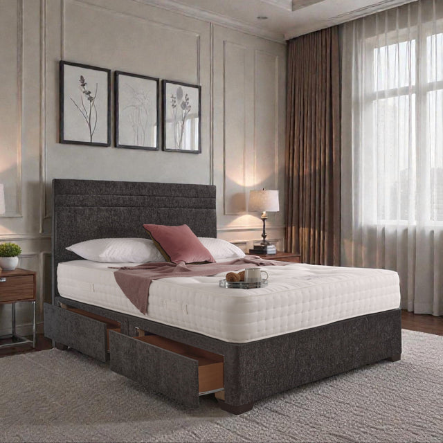 The Berlin Divan Bed Set from our Signature Collection is expertly handcrafted in the UK using high-quality British timber. Upholstered in a stylish, contemporary fabric, this elegant divan bed is designed to bring comfort, durability, and refined style to any bedroom.